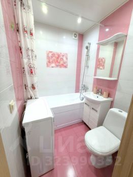 На кухне: кухонный гарнитур, двухкамерный холодильник, газовая варочная панель, духовой шкаф, микроволновая печь и чайник. В просторной комнате с 2-мя окнами стоит двухспальный диван, тумба с телевизором и платяной шкаф. Санузел совмещен, чистый, в плитке до потолка, стоит стиральная машина. В прихожей стоит шкаф-купе. На полу - ламинат.