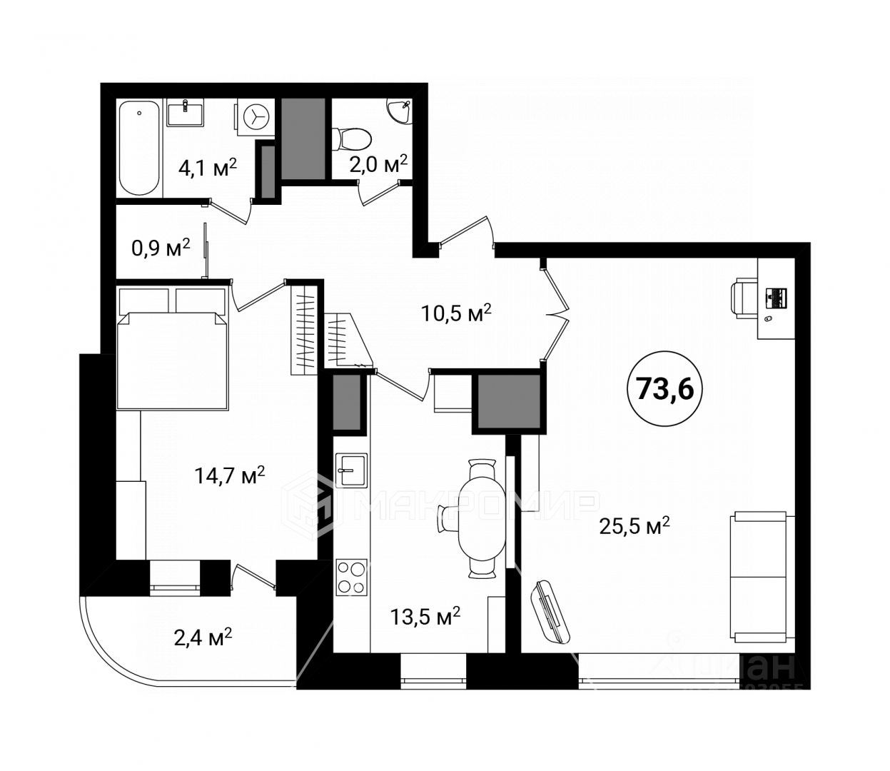 73,6 м²