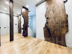 - Холл с эффектным зеркалом в раме из натуральных слэбов Карагача
