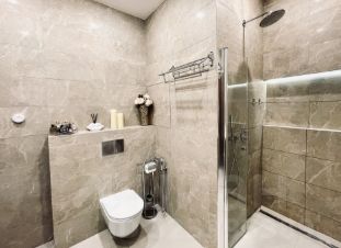 - Просторная ванная комната с душевой кабиной и подогревом пола