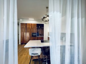 - Просторная кухня-гостиная с панорамными окнами и большой лоджией