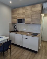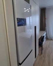 В квартире сделан современный евроремонт. Обстановка включает в себя необходимую мебель для комфортного проживания. В комнате есть кондиционер, холодильник и стиральная машина, поэтому можно сразу заехать без дополнительных забот. Санузел совмещённый, оборудован душевой кабиной, что добавляет удобства.
