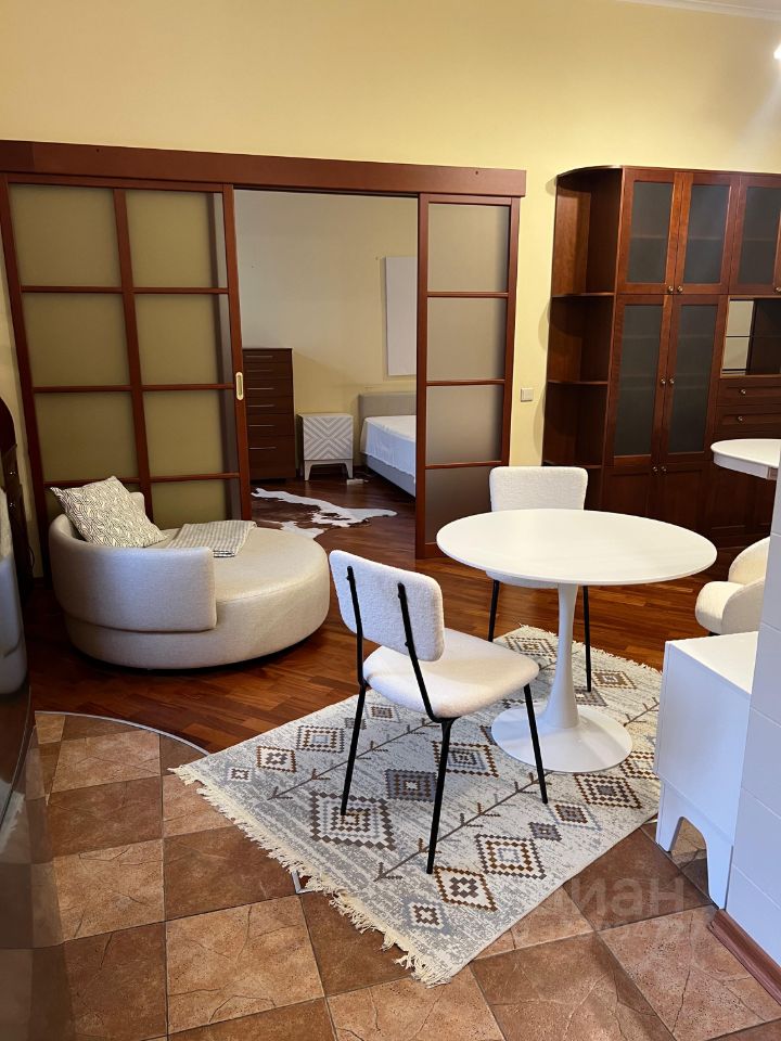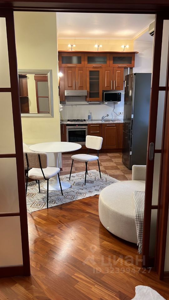 Планировочное решение: спальня -20 кв.м., гостиная-15 кв.м., и кухонная зона 6 кв.м. Совмещенный санузел. Дорогой ремонт, ПВХ, паркет, плитка. Имп. дорогая сантехника. Теплые полы на кухне и в санузле. Дорогая мебель. Встр. шкафы-купе. Встр. быт. техника, вкл. ПММ и кондиционер. Интернет. Окна в тихий Калашный переулок. Великолепное красивейшее место. В доме рестораны, кафе, салоны. Напротив зеленый сквер. Квартира сдается на