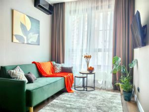 В квартире сделан капитальный дизайнерский ремонт с качественной отделкой и мебелью. Внутри есть все, что нужно для комфортной жизни: абсолютно новая кухня со встроенной техникой, кондиционер в комнате, телевизоры, большая двуспальная кровать, шкаф во всю стену в прихожей и спальне. Ремонт абсолютно новый - квартира идеально подходит для комфортной жизни, полностью готова к заселению.