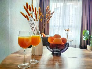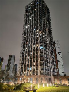 Общая площадь составляет 36.8 кв. м, жилая — 20 кв. м, кухня — 10 кв. м. Квартира расположена на 16 этаже 28-этажного дома, поэтому открывается прекрасный вид на город. Всего в доме один пассажирский и два грузовых лифта, что существенно облегчает перемещение.