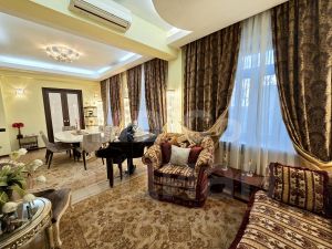 Номер Объекта: 2213. Звоните с 9.00 до 21.00. Эксклюзивное предложение на рынке! Трёхкомнатная квартира в районе Остоженки. Дом 1926 года, памятник культурного наследия. Окна на две стороны, во двор и в палисадник. Выполнен высококачественный дизайнерский ремонт с использованием дорогих материалов. Планировка: 30м² гостиная, 22м² спальня, 12м² кабинет, 12м² раздельный санузел, 8м² кухня, 6м² гардеробная. Закрытая территория, охрана, круглосуточное видеонаблюдение. Тёплый кирпичный дом, высокие потолки, отличная звукоизоляция. 4 минуты пешком до станции метро Парк культуры, Кропоткинская 9 минут пешком.