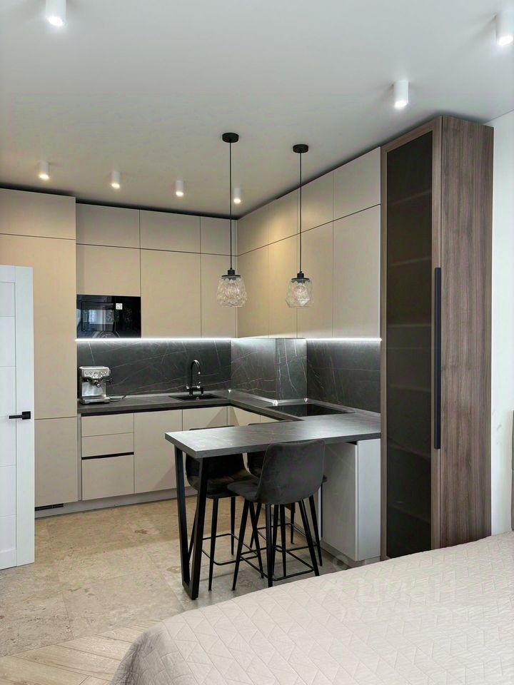 Вся мебель выполнена на заказ, продуманная система хранения: