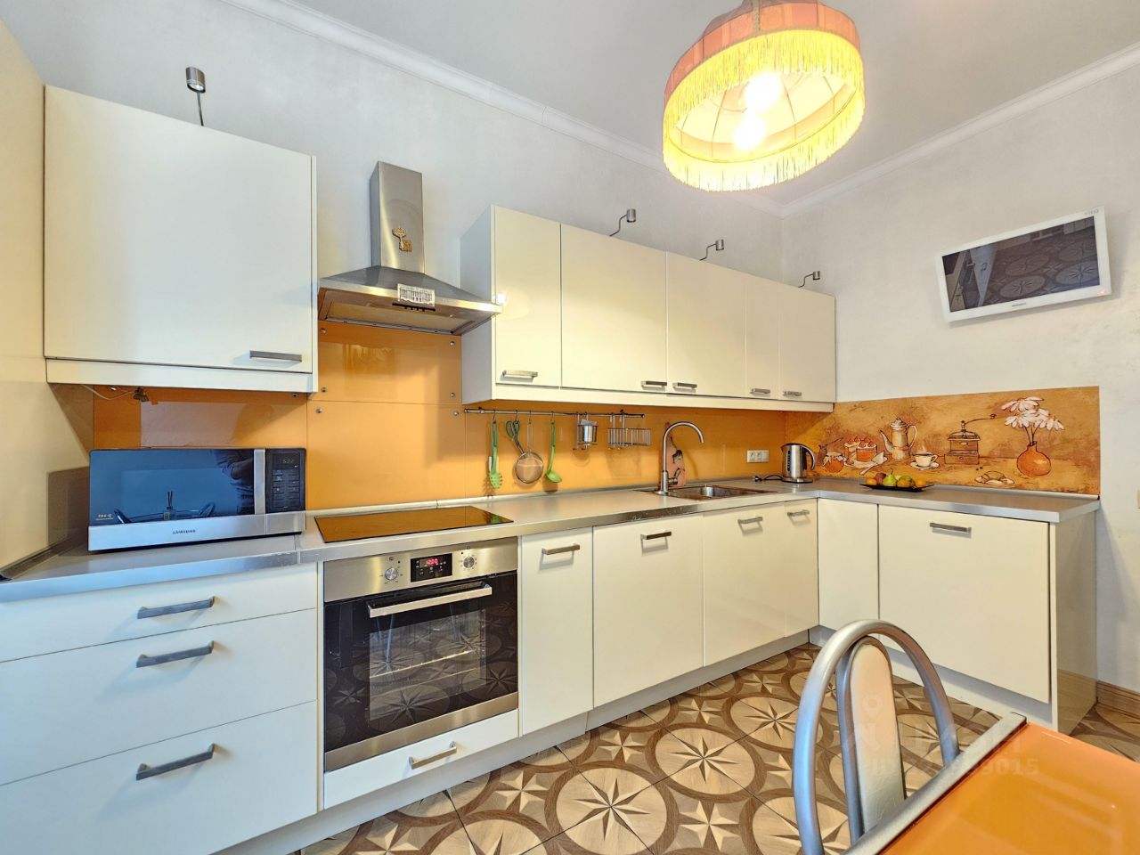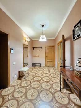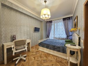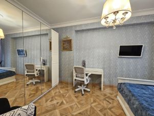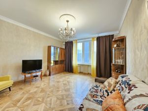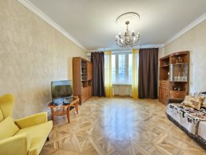 Квартира расположена на 5 этаже в доме с 3-х метровыми потолками и представляет собой: гостиную 26 кв.м., спальню 14 кв.м., кухню -12 кв.м., совмещенный санузел 7 кв.м., холл 10 кв.м., из спальни выходит на сквер застекленный балкон, так же есть небольшая кладовая. Капитальный ремонт был в квартире 10 лет назад, ремонт постоянно обновляется. Санузел с душевой кабиной и биде. Кухня оснащена всей необходимой техникой от IKEA. Квартира теплая, на полу в комнатах паркет. Есть большой шкаф в спальне. В гостиной установлен кондиционер.