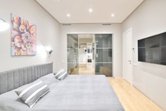 3 спальни: мастер-спальня с большой гардеробной и рабочей зоной на двоих, две детские/гостевые (одна с лоджией).