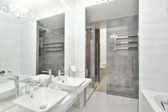 2 санузла: один с душевой, второй — с ванной и дополнительной большой душевой с тропическим душем.