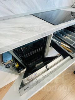 Квартира полностью меблирована и оснащена всей необходимой, качественной бытовой техникой для комфортного проживания, включая посудомоечную машину.