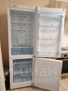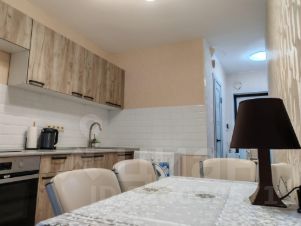 Квартира с евроремонтом: современная отделка, мебель в комнате и на кухне, есть холодильник и стиральная машина. Санузел совмещенный и оборудован ванной. Планировка удобная и комфортная для проживания. Лоджия добавляет дополнительное пространство для отдыха и хранения вещей.