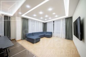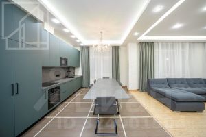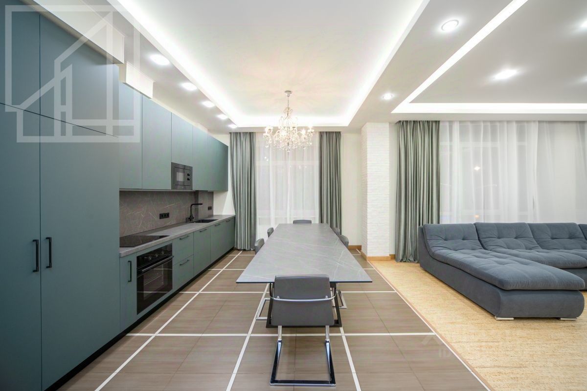 Планировка: кухня-гостиная, кабинет, три спальни, три санузла. Есть гардеробная комната. Потолки 3.2 м. Выполнен современный ремонт с использованием высококачественных материалов. Квартира полностью меблирована, вывоз мебели обсуждаем. Окна выходят на обе стороны.