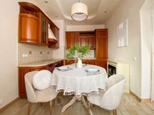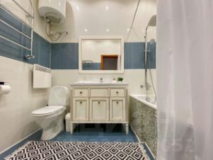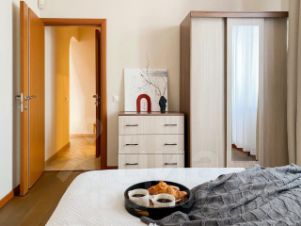 В квартире, есть гардеробная и кладовка, вся необходимая техника: духовой шкаф, индукционная плита фирмы Bosch, посудомоечная и стиральная машина, микроволновка, встроенный холодильник.
