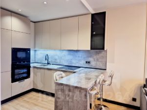 Функциональная кухня со всей техникой и большой рабочей поверхностью.