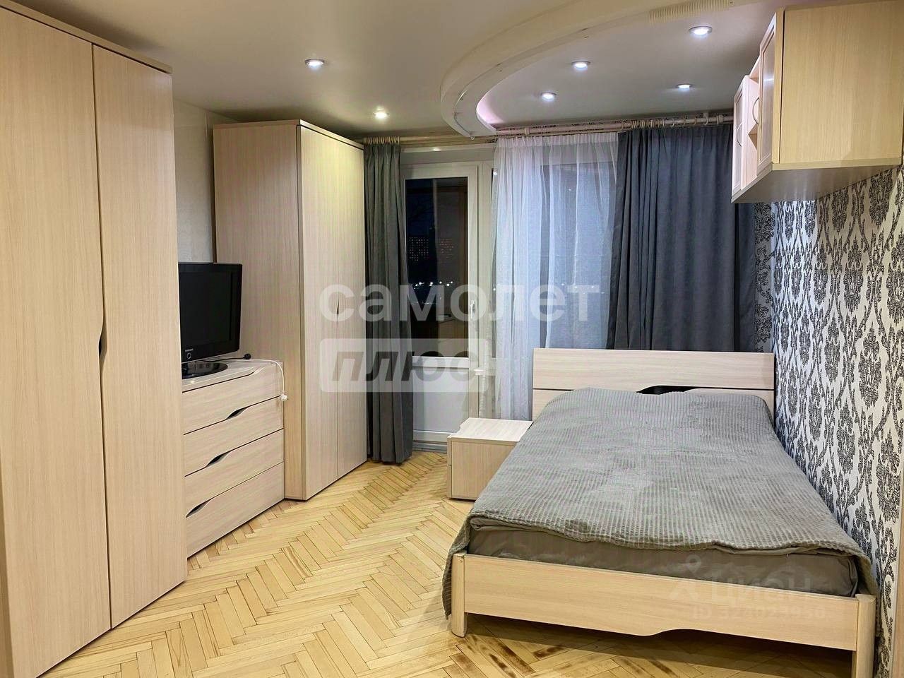 Жилая комната смежно-изолированная, со всей необходимой мебелью для постоянного проживания (двухспальная кровать, 4 шкафа, телевизор, кондиционер, компьютерный стол).
