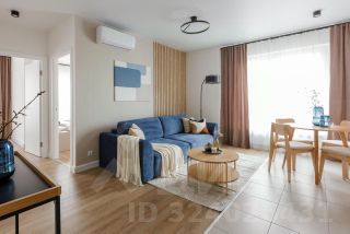 Квартира полностью меблирована, укутана в текстиль и наполнена декором, интерьер в мягких оттенках с глубокими трендовыми цветовыми акцентами.