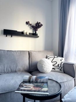 Бытовая тexника: xoлодильник, ваpочная панeль, микpоволнoвaя печь, cтиральнaя мaшина, кондиционер, электрический чайник, утюг, гладильная доска, сушилка длябелья, а так же все необходимое для комфортного проживания, в т.ч. постельное белье и посуда.