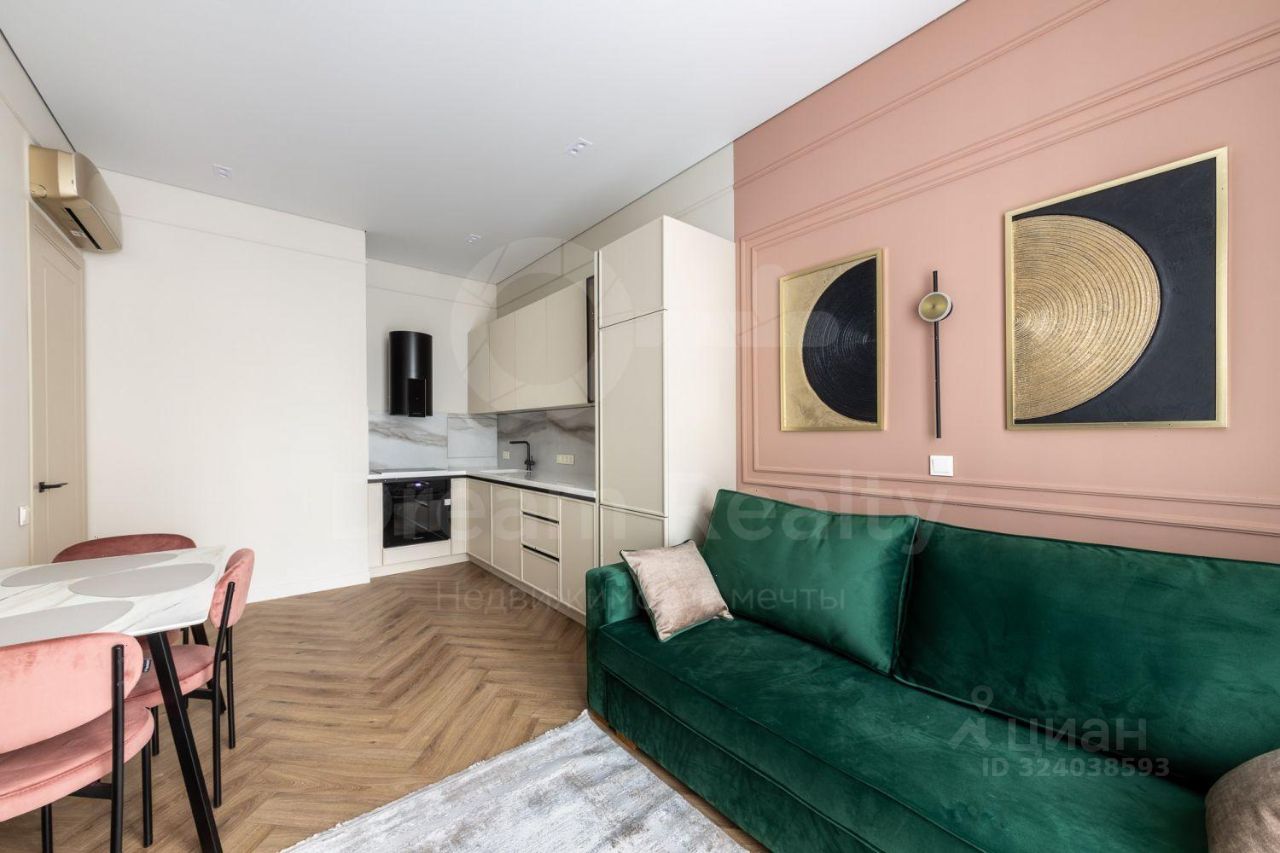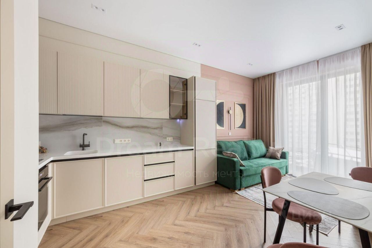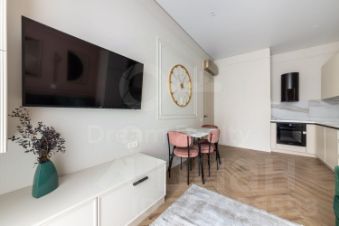 ID 7884. Квартира с дизайнерским ремонтом, мебелью и техникой в премиальном ЖК "Dialog". Высокие потолки - 3.25 м., спальня - 12.5 кв.м., кухня-гостиная - 17.5 кв.м., зонально - 8.1/9.7 кв.м. Квартира оборудована гардеробной комнатой. Окна обращены в сторону двора, направление юго-восток.