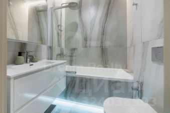 В квартире много света. Панорамные окна в пол обеспечивают достаточную освещённость в дневное время. Внутреннее освещение квартиры состоит из ярких потолочных галогеновых светильников и контурно периферического освещения, а также настенного и кухонного освещения.
