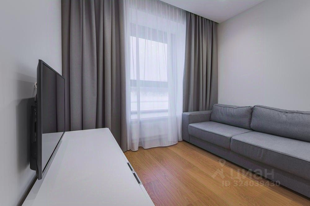 Просторная, 2-комнатная квартира 3477 с гардеробной, евро- планировка (кухня-гостиная + спальня+ санузел), с высокими потолками, площадью 59 м2, расположенная на двадцать третьем этаже нового арендного дома Матч Поинт.
