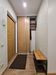 новый кухонный гарнитур, большой 6-створчатый шкаф, шкаф-купе, диван-кровать; холодильник, посудомойка, варочная панель, вытяжка, чайник, стиральная машина, СВЧ, кондиционер, ТВ, Wi-Fi.