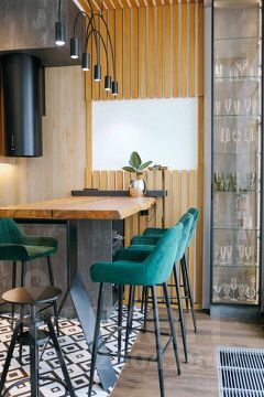 • Просторная кухня, объединенная с гостиной и укомплектованная всей необходимой бытовой техникой: встроенная кофемашина Siеmеns, посудомойка, холодильник с ледогенератором, духовка, блендер, чайник, встроенный фильтр для воды, микроволновка.