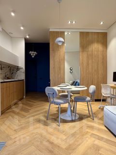 В квартире продуманное до мелочей пространство, для комфорта уюта и удобства проживания, есть всё необходимое для жизни: двуспальная кровать, раскладной диван, рабочий стол, кондиционер, холодильник, посудомоечная и стиральная машины, измельчитель, электррокарниз, подогревы пола, система "умный дом". С/У совмещенный с ванной. Балкон с прозрачным ограждением.