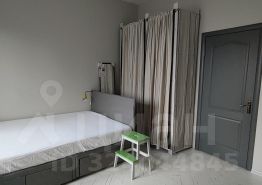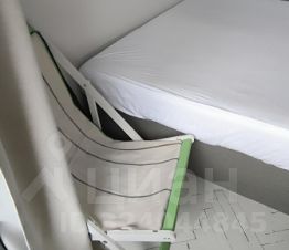 В комнате: рабочее место (стол, стул, настольный светильник), лестница-табурет, зеркало, кровать с матрасом 150х200 см и выдвижными ящиками (светильник для чтения), стеллаж для вещей, комод, шезлонг.