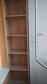 Большая лоджия с сушилкой для белья, шкафом и стеллажом — отличное место для хранения и отдыха.