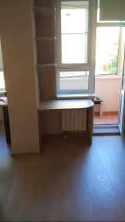 В гостиной — раскладной диван с ящиком для хранения, в спальне — удобная двуспальная кровать (160200) и письменный стол.