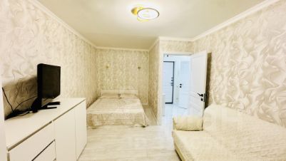 В квартире сделан свежий евроремонт. Комната светлая и просторная, с мебелью, в которую входят удобные диван и шкаф для хранения вещей. Кухня большая, 18.9 кв. м, оборудована всей необходимой мебелью и техникой: холодильник, кондиционер, телевизор , микроволновая печь, стиральная машина. Совмещенный санузел с ванной. Имеется балкон для отдыха и хранения сезонных вещей. Подключен интернет, что отлично подходит для удаленной работы или учебы.