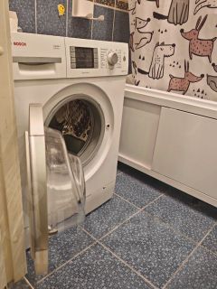 В ванной комнате ванна с функцией джакузи, электрический полотенцесушитель, стиральная машинка Bosch, недавно прошла техосмотр, заменены необходимые детали. Установлен бойлер на случай отключения горячей воды.