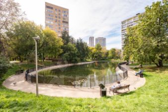 Во дворе ухоженная прогулочная зона с прудом (утки, лебеди, всё как положено). Идеальная тишина, защита от шума и пыли.