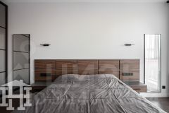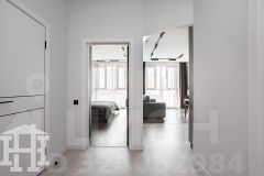 -Интерьер выполнен в светлой, воздушной палитре, что придаёт помещению лёгкость и простор