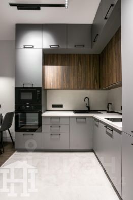 -Эргономичная кухня с удобным расположением рабочей зоны и достаточным местом для хранения, подчёркнутая современным дизайном