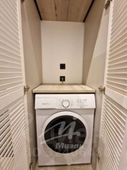 Кухня оснащена встроенной бытовой техникой: холодильником, посудомоечной машиной , микроволновой печью, духовым шкафом и стиральной машиной. В гостиной диван, телевизор, а также выделенная зона с кроватью.