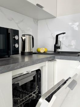 Бытовая техника: холодильник, варочная панель, электрический чайник, утюг, пылесос, стиральная машина, сушилка для вещей, посудомоечная машина, кондиционер.