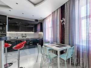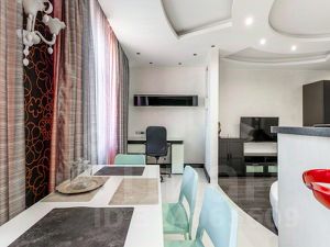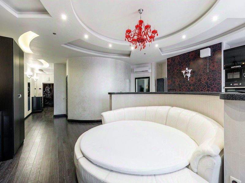Арт. 49831920. Предлагается стильная двухкомнатная квартира на 18 этаже современного ЖК Шмитовский 16, расположенном в районе Красной Пресни, с шикарным видом на половину Москвы. В квартире выполнен ремонт по авторскому дизайн-проекту, современные оборудование и инженерия, подогрев полов, кондиционеры, бойлер, ТВ, Wi-Fi. Квартира полностью укомплектована мебелью. Стены эксклюзивная краска с эффектом мерцания светлых тонов и авторские английские обои ручной работы, пол - ламинат и итальянская плитка и мозайка, окна - стеклопакеты. Потолок разно уровневый, люстры и бра из итальянского стекла. Кухня-гостиная 60 кв.м. с огромным круглым диваном и барной стойкой, тумба под аппаратуру, ЖК ТВ, есть место под кабинет с письменным столом и полкой. Уютная черно-белая спальня 25 кв.м. с круглой кроватью, коридор с зеркальным вместительным шкафом-купе, 2 с/узла (совмещенный санузел с джакузи, и гостевой санузел с душевой). Черная кухня, наличие всей необходимой бытовой техники (холодильник, встроенные: микроволновая печь, посудомойка, варочная панель, духовой шкаф, Gorenje и прочее). Просторный балкон с теплым полом, видео-домофон.