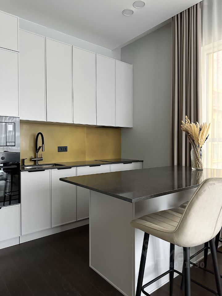 Мебель премиального качества: кровать 160*200 с подъемным механизмом и ортопедическим матрасом, диваны раскладываются в спальное место, столешница кухни и стол выполнены из кварца.