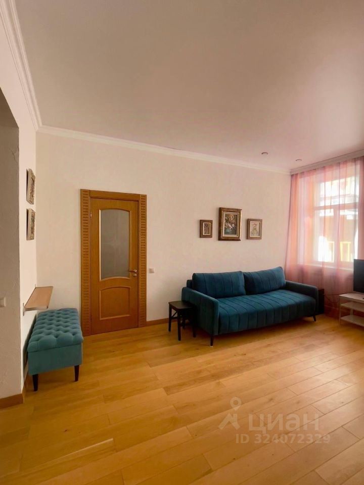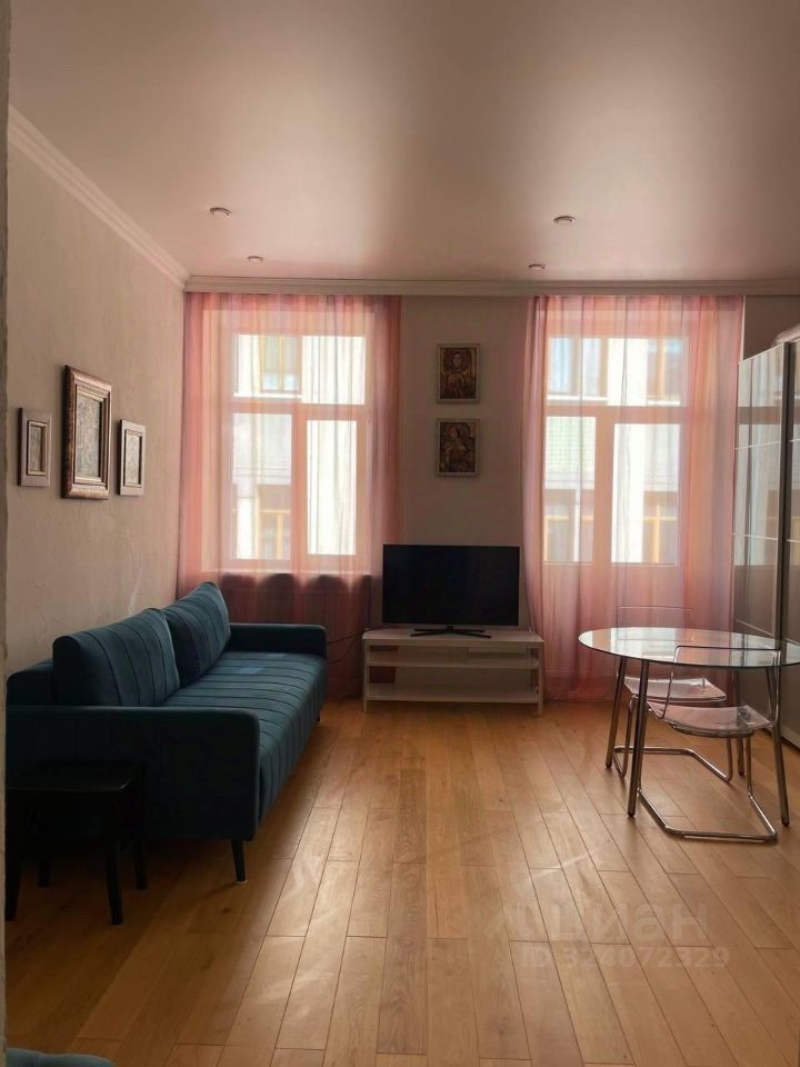 Функциональная планировка: просторная гостиная, объединенная с кухней; уютная спальня; санузел с ванной. Балкон с выходом на Барыковский переулок. Все комнаты светлые с большими окнами.