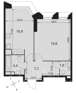 О помещении: высота потолков 3,17м, коридор-прихожая, комната-спальня, кухня, 2 потенциальных санузла.