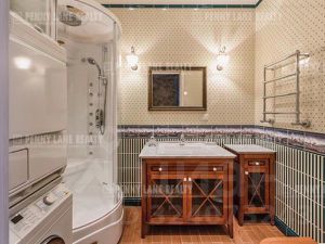 Арт. 48969737. Шикарная квартира с террасой в жилом комплексе Триумф Палас. Площадь квартиры - 272 кв.м. + терраса 161 кв.м. В квартире выполнен авторский дизайн - стиль Времена года. Дорогая мебель из Италии, сантехника премиум класса. Вся мебель, техника, картины остаются в квартире. Планировка: гостиная с библиотекой, кухня, кабинет, спальня, гардеробная, 2 сан/узла. На террасе оборудовано патио. Также имеются 2 машино-места в подземном паркинге - включены в стоимость. Комплекс "Triumph-Palace" расположен на западе столицы, в районе Сокол. Эта часть Москвы известна большим количеством домов сталинской постройки, обширными лесопарковыми зонами и развитой инфраструктурой. Недалеко расположены парки Покровское-Глебово и Покровское-Стрешнево, в 10-ти минутах езды — берег Москвы-реки и Серебряный бор. "Триумф-Палас" граничит с Чапаевским парком. Жилой комплекс построен в монументальном стиле семи московских высоток, с 5-уровневой стилобатной частью и девятью жилыми секциями переменной этажности. Высота здания со шпилем достигает 264,5 метра. Богатый стиль "ампир" дополняет высококачественная современная отделка наружной и внутренней частей здания, в проекте использовался облицовочный камень, гранит, керамическая плитка, иранский травертин, вертикальные витражи. Под домом предусмотрен пятиуровневый подземный паркинг. Круглосуточная охрана по всему периметру территории, имеется внутренний дворик - роскощный яблоневый сад с аллеями для прогулок.