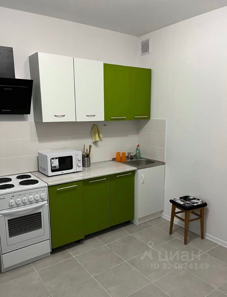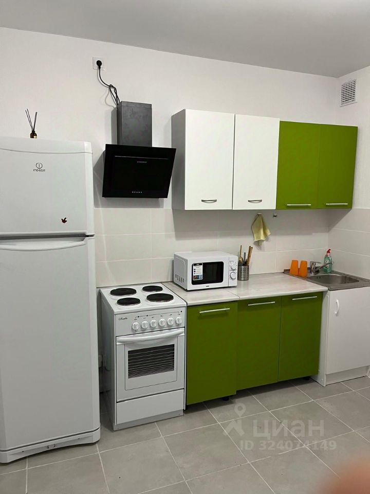 В наличии: холодильник, микроволновка, вытяжка, электрическая плита, электрический чайник, стиральная машина, паровой утюг, пылесос.
