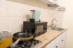 Готовьте с удовольствием: Вас ждет полноценная кухня со всей необходимой техникой: газовая плита, духовка, микроволновка, холодильник, чайник, кофеварка.