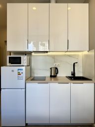 Оборудованная кухня, посуда, все для приготовления еды. Новая мебель и бытовая техника. Кондиционер.