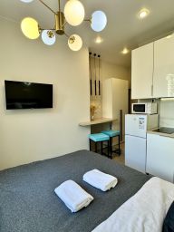Предлагается современная и уютная студия с качественным дизайнерским ремонтом.