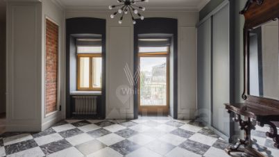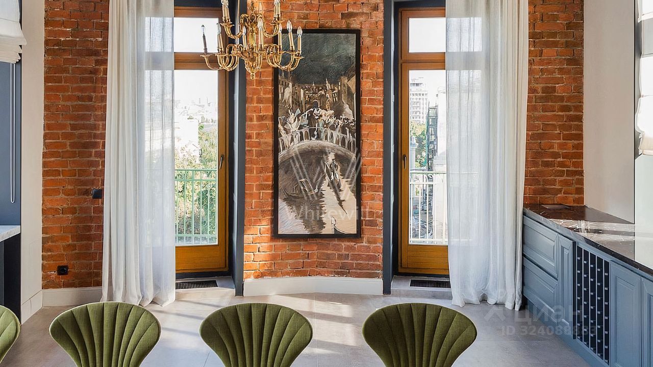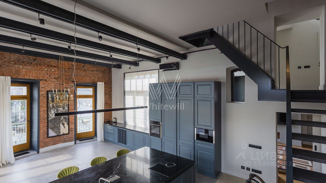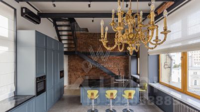 Бонус партнёрам 50%. Просторный пентхаус с террасой и камином расположен на четырёх этажах клубного особняка рядом с Храмом Христа Спасителя и Кремлём. В квартире сделан авторский ремонт по проекту Бориса Уборевича-Боровского в современном стиле с элементами стиля "лофт", подлинной кирпичной кладкой и отреставрированной лестницей. Всего спланировано 3 спальни. Мебели в квартире нет, установлена только кухня и кровать.