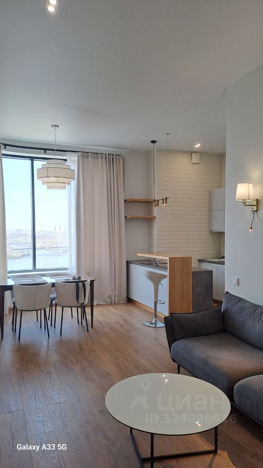 Апартаменты расположены на 20-м этаже 26-этажного дома, с которого открывается потрясающий вид на город и реку. Территория ЖК включает набережную.