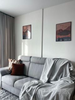 В студии выполнен дизайнерский ремонт, который подчёркивает современность и стиль. Комната меблирована, всё необходимое уже есть: кондиционер, холодильник, телевизор и стиральная машина. Кухня также полностью оборудована и готова к использованию. Ванная комната оснащена душевой кабиной, что делает утренние сборы быстрыми и комфортными. Окна выходят на улицу, открывая панорамный вид.